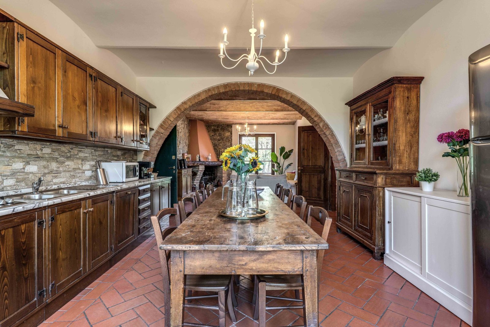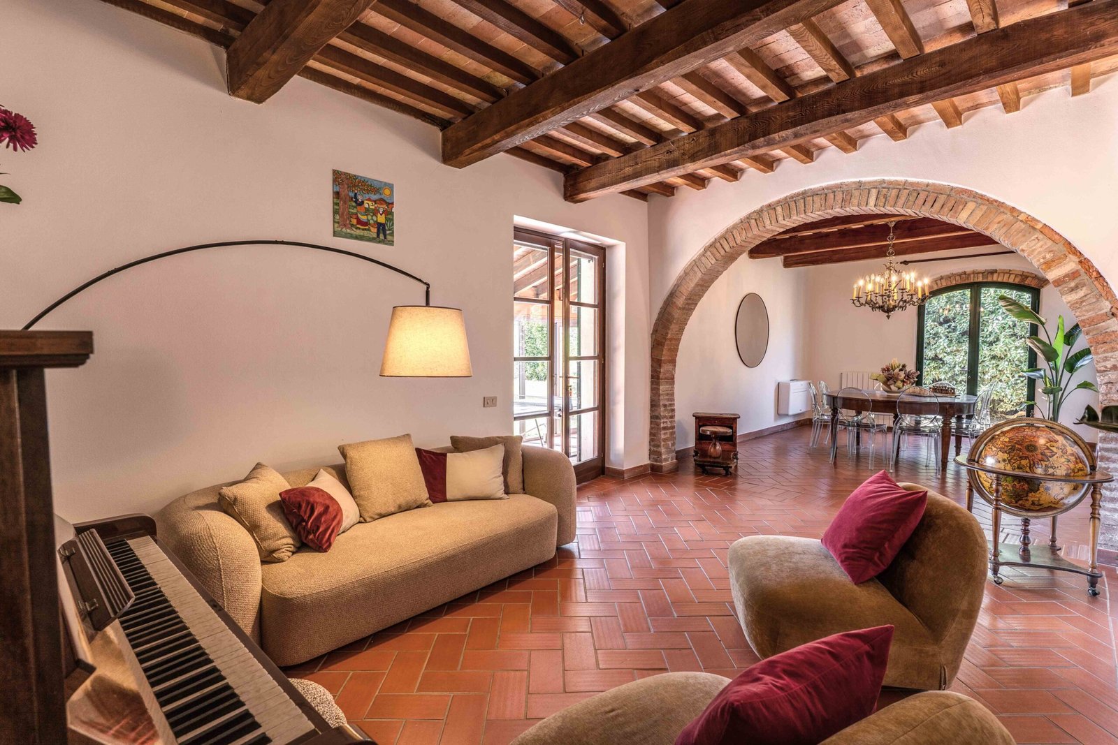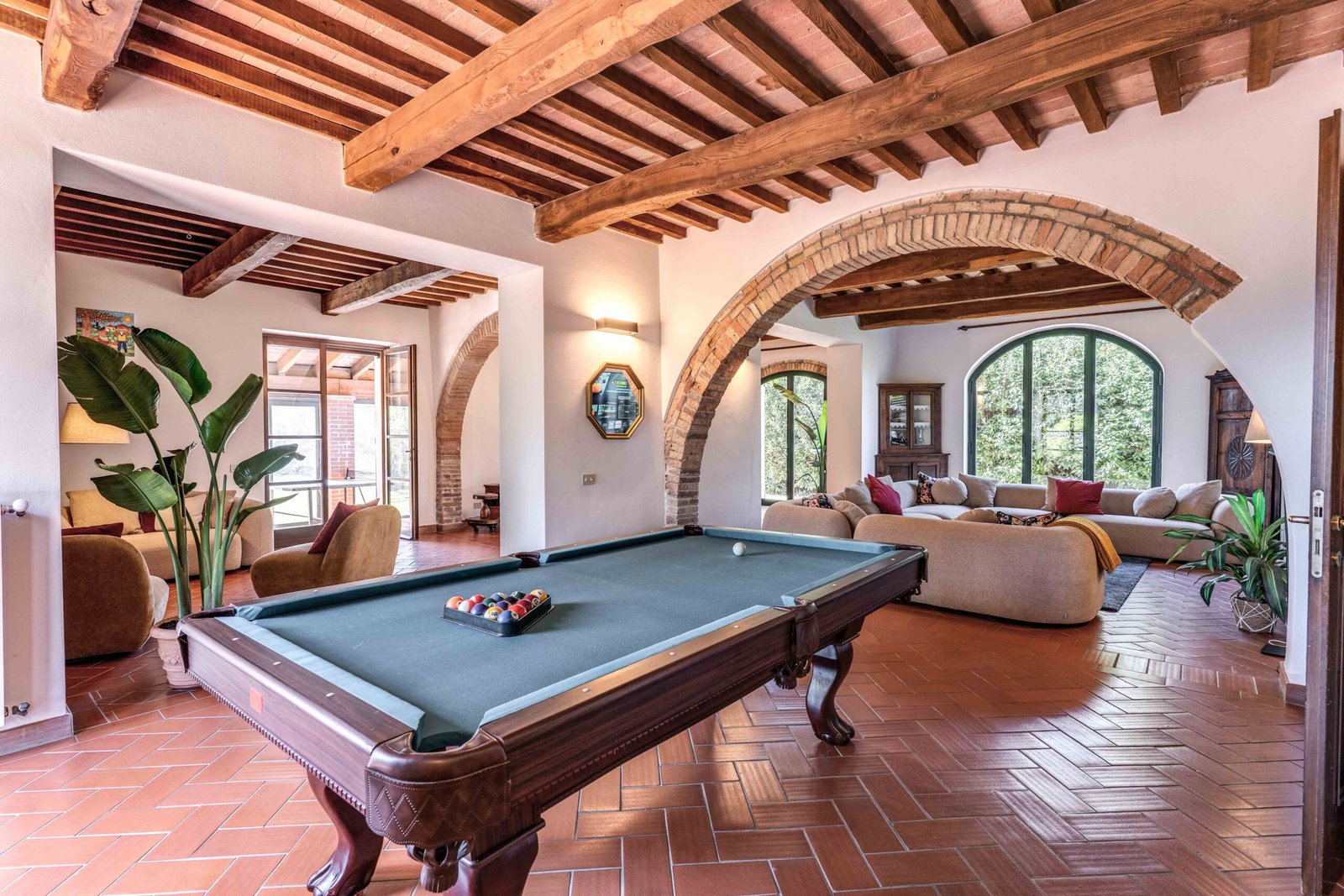 With nine bedrooms, six bathrooms, a fully equipped kitchen and expansive living spaces, Villa San Martino welcomes gatherings of friends and family with grace. Beyond its walls: a seasonal pool shimmering beneath Tuscan skies, a tennis court, table tennis, sauna, and terraces that frame the garden like living paintings. Complimentary Wi-Fi and private parking complete the picture.