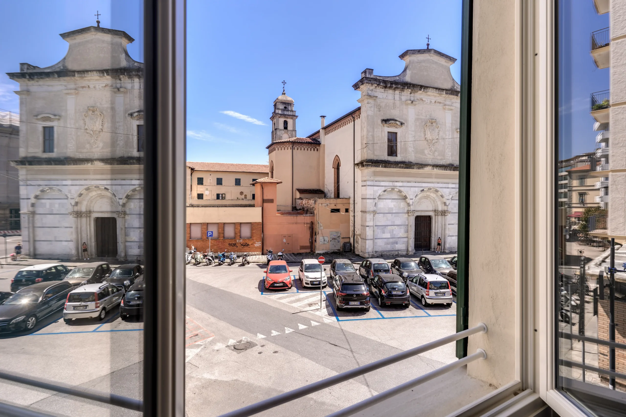 This apartment welcomes you with a spacious living room and kitchen, two double bedrooms, a bathroom with shower and a terrace overlooking the square. It comes with Wi-Fi, Smart TV, dishwasher, washing machine and air conditioning in every room, all in a space designed for those who love style and comfort.